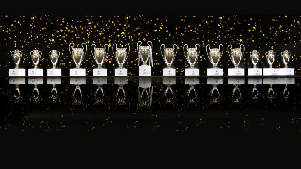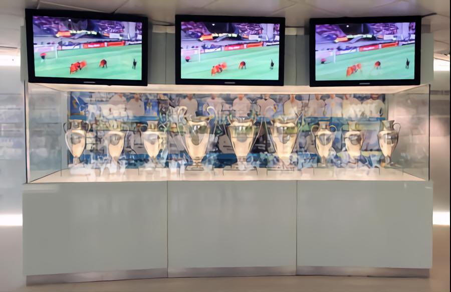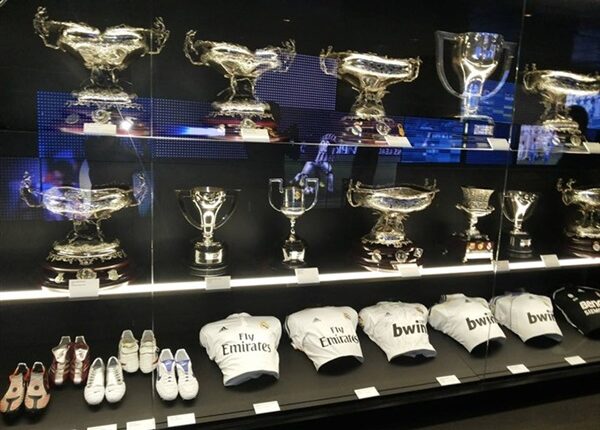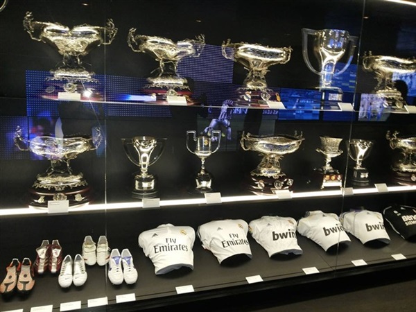 - كما ستجد أن متحف ريال د مقسم إلى عدة أقسام ،فهناك قسم مخصص لعرض الكؤوس والميداليات التي حاز عليها فريق ريال مدريد.