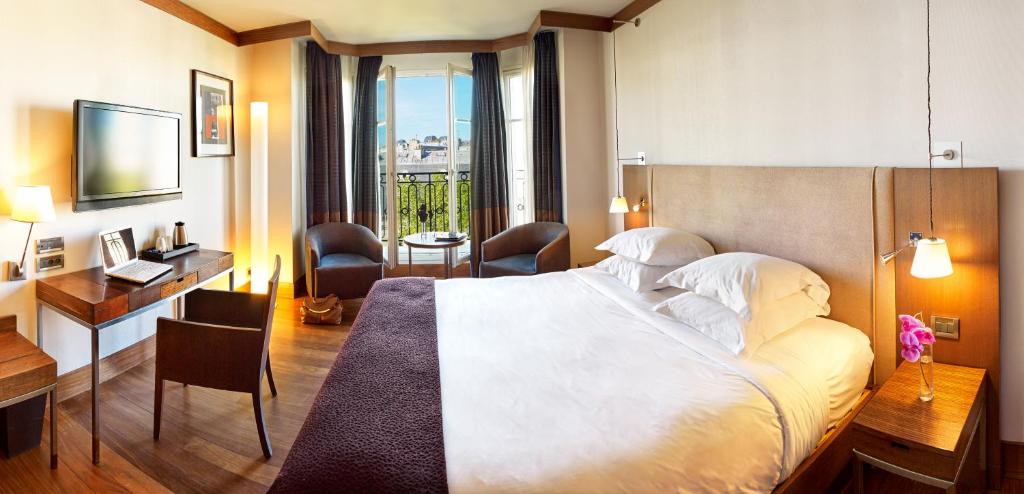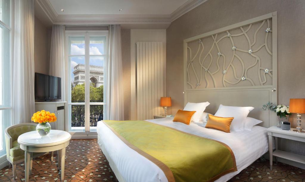 إطلالات رائعة: استمتع بإطلالات فريدة ومثيرة على قوس النصر وجمال المدينة من غرف الفنادق الفاخرة.