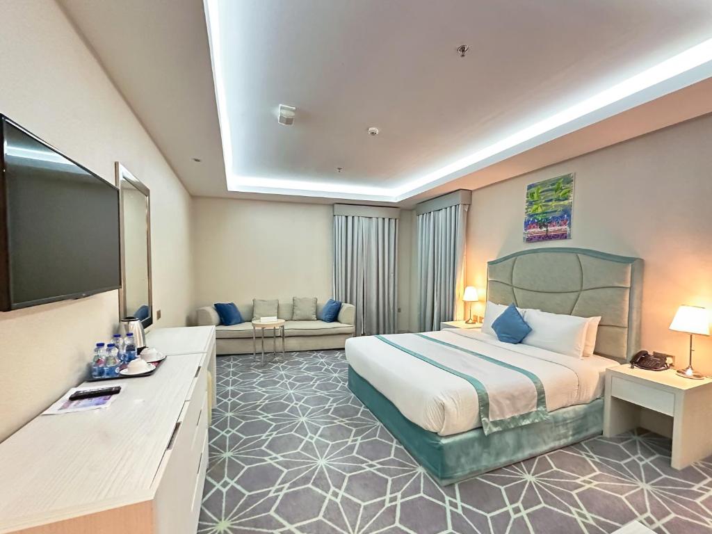 غرف فاخرة ومريحة: تتميز الغرف بالفخامة والراحة، مجهزة بأحدث التقنيات والوسائل التكنولوجية لضمان إقامة مريحة ومميزة.